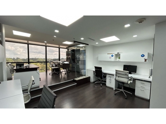 Alquiler de oficina amoblada y equipada, 6 puestos de trabajo integrados, kichinette, depósito, baño privado.